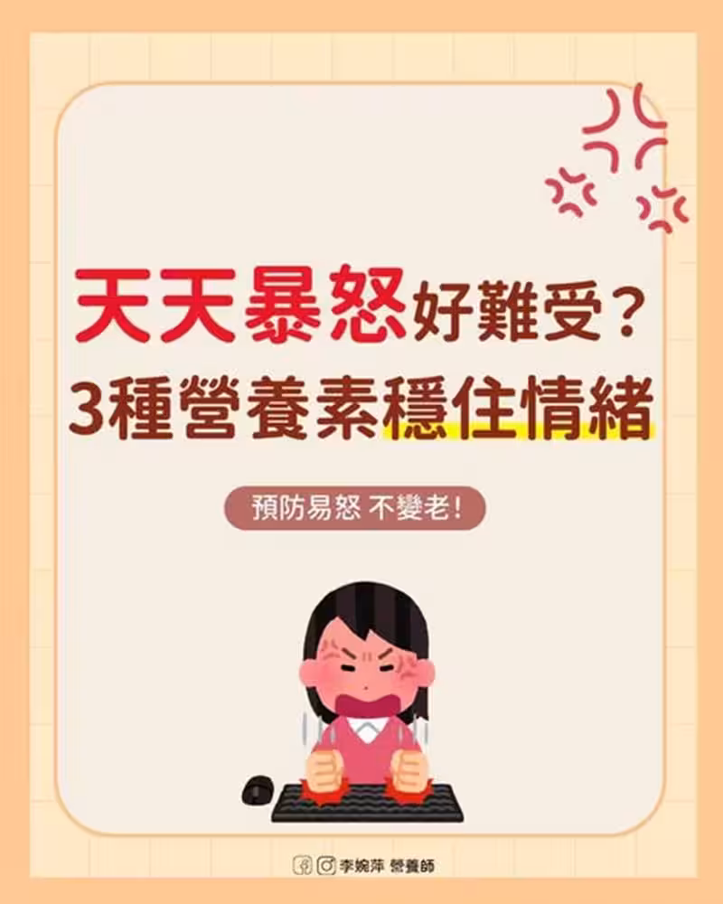 吃東西對情緒有幫助?營養師李婉萍發文指出,天天暴怒讓人相當難受,除了調整內心,也可嘗試讓「營養素」來穩住情緒、防止變老,如維生素B1(糙米中有)、維生素B3(香菇中有)等,都算容易攝取,她也透露「生氣當下營養師會衝到便利商店,買根香蕉、胚芽牛奶,邊吃邊喝邊消氣」。