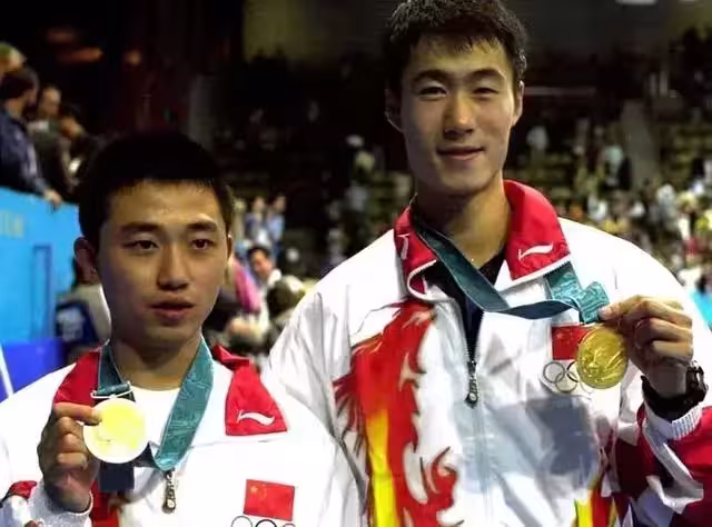 2000年雪梨奧運會,王勵勤與閻森獲得桌球男雙金牌。圖源:新華社