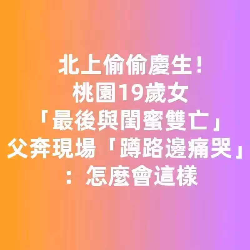 桃園女北上偷偷慶生!「最後與閨蜜雙亡」...父奔現場「蹲路邊痛哭」:怎麼會這樣