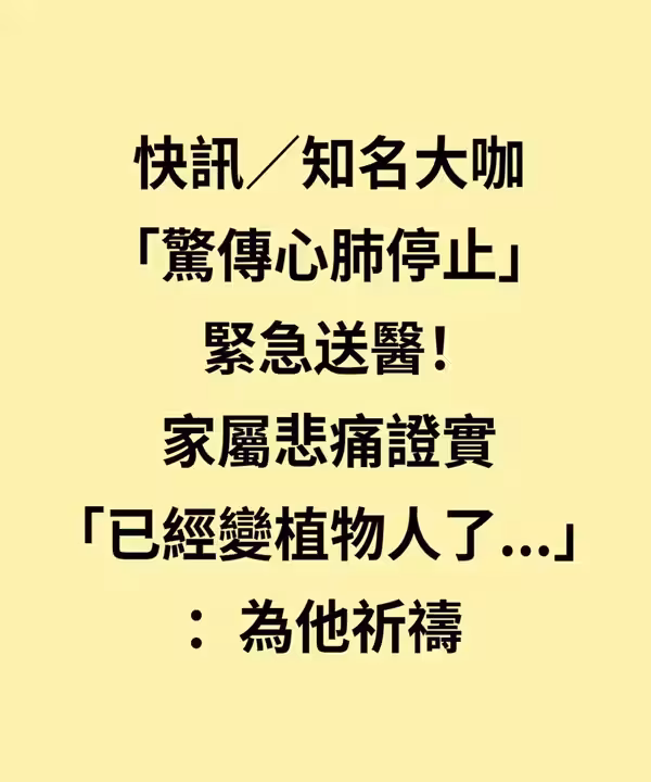 知名大咖「驚傳心肺停止」緊急送醫!家屬悲痛證實「已經變植物人了...」:為他祈禱