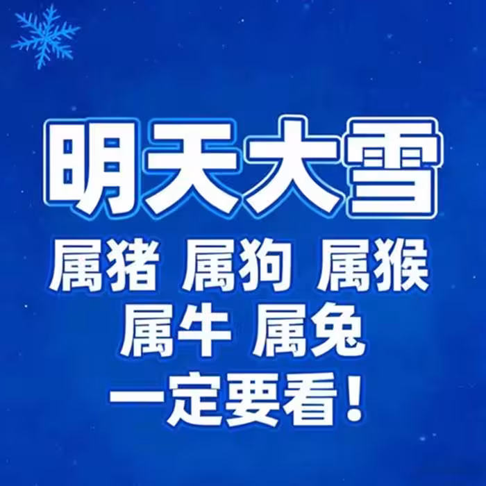 明天大雪「屬豬 屬狗 屬猴 屬牛 屬兔」一定要看