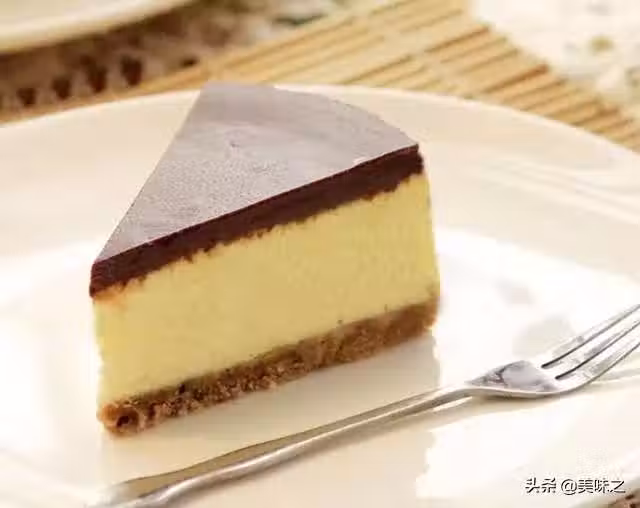 16、輕輕晃動一下,使巧克力混合液平鋪在蛋糕上,巧克力乳酪蛋糕就做好了,蒙上保鮮膜,放入冰箱冷藏,偶是頭一天晚上做,第二天拿出來吃的。