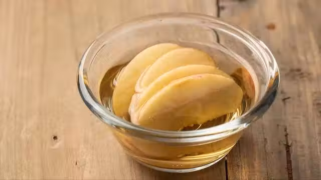 製作方法:將蘋果洗凈切成小片,將蘋果鋪滿瓶底、撒上一層冰糖、放上檸檬片,如此循環,將食材全部放入瓶內後,倒入白醋發酵,大約十天左右就可以食用了。泡蘋果醋好處多多,蘋果醋中含有大量的維生素C,長期食用有美容養顏的效果。