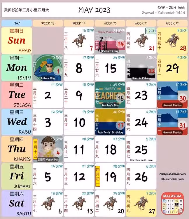 4 Mei : Khamis : Hari Wesak : Semua Negeri