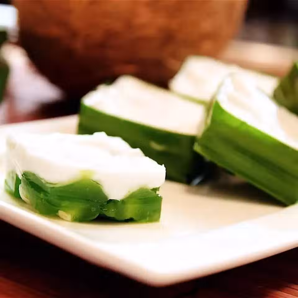 上層白色/椰奶:濃椰漿 150克,清水 150克,綠豆粉 20克,細砂糖 50克,鹽 少許