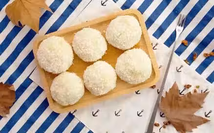 4.最後讓糯米糍在椰絲里打個滾就可以開動啦。