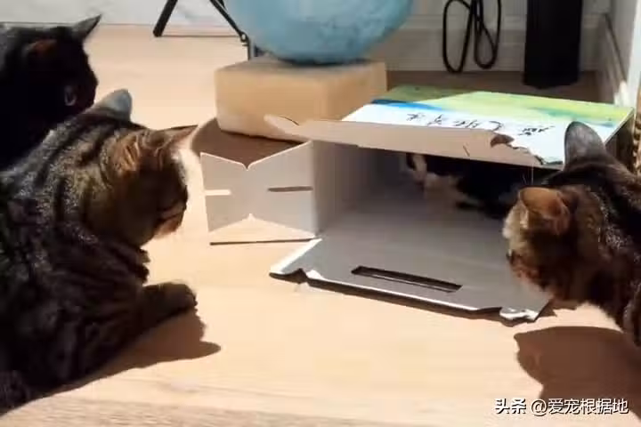 在小貓來到新家一個星期的時候,這三隻大貓就已經把它當成了團寵,貪玩的狸花貓,特別喜歡逗它,時不時竄到小貓面前嚇它一跳。