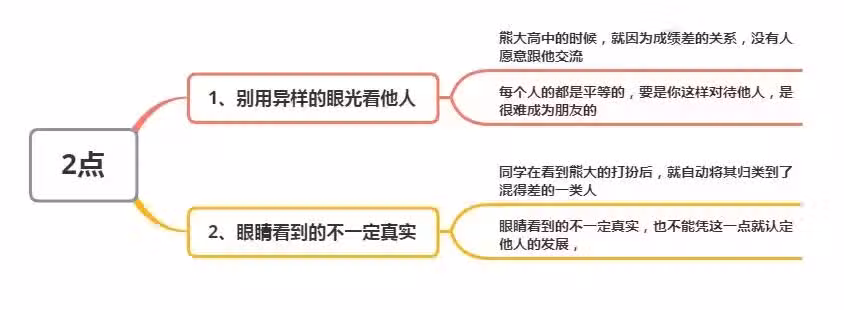 1、別用異樣的眼光看待他人 已經體現得很清楚了,熊大高中的時候,就因為成績差的關係,沒有人願意跟他交流,這就是用異樣的眼光看待他人。 每個人的都是平等的,要是你這樣對待他人,是很難成為朋友的。沒有誰能夠決定他人的未來,曾經你眼中的差學生,在進入社會後也不一定會比你差。