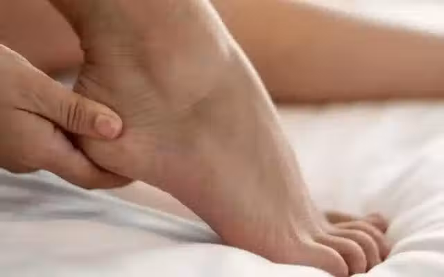 用雙手緊抱一側大腿,從大腿向下按摩,一直到足踝,然後再從踝部按摩至大腿根;再用同樣方法按摩另一條腿,重複10~20遍。可預防下肢靜脈曲張、肌肉萎縮等。