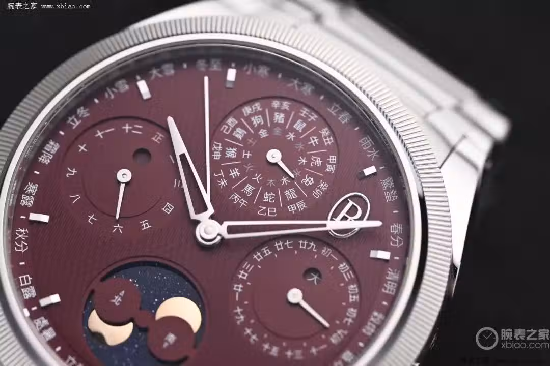 如今,一隻50萬級別的手錶,它既沒有珠寶也不是金殼,那麼它必定會有過人的功能或工藝。而這隻Tonda PF夏曆表其精髓自然是錶盤上精妙複雜的曆法顯示。所謂夏曆通俗來講就是我們傳統的農曆,相較於西方的陽曆,農曆屬於陰陽合曆,是根據太陽和月亮的運行規律而制定,我們的祖先通過月相變化判斷潮汐來指導海事活動,通過太陽直射點的運行規律制定出24節氣,節氣反映了氣候也影響著農耕生產和每個人的衣食住行,進而形成了我們特有的習俗和節日。而這款表讓我們第一次在手錶上看到了節氣顯示。