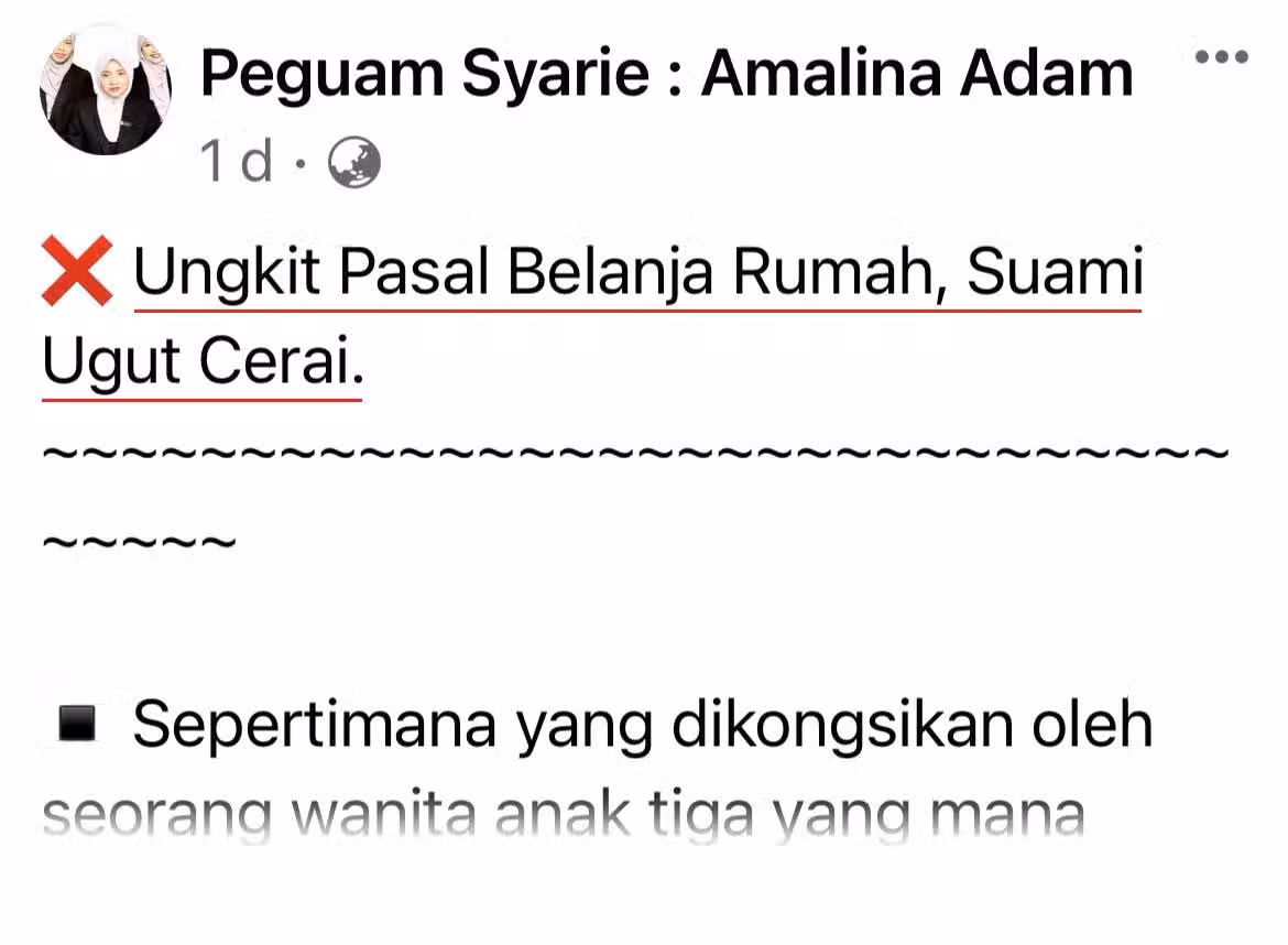 丈夫每個星期只給RM20家用,妻子買家庭用品、食物都只能用這麼一點錢,就這樣一忍就忍了8年之久!近日一名大馬律師通過臉書分享這起真人真事,妻子決定結束這段婚姻關係。