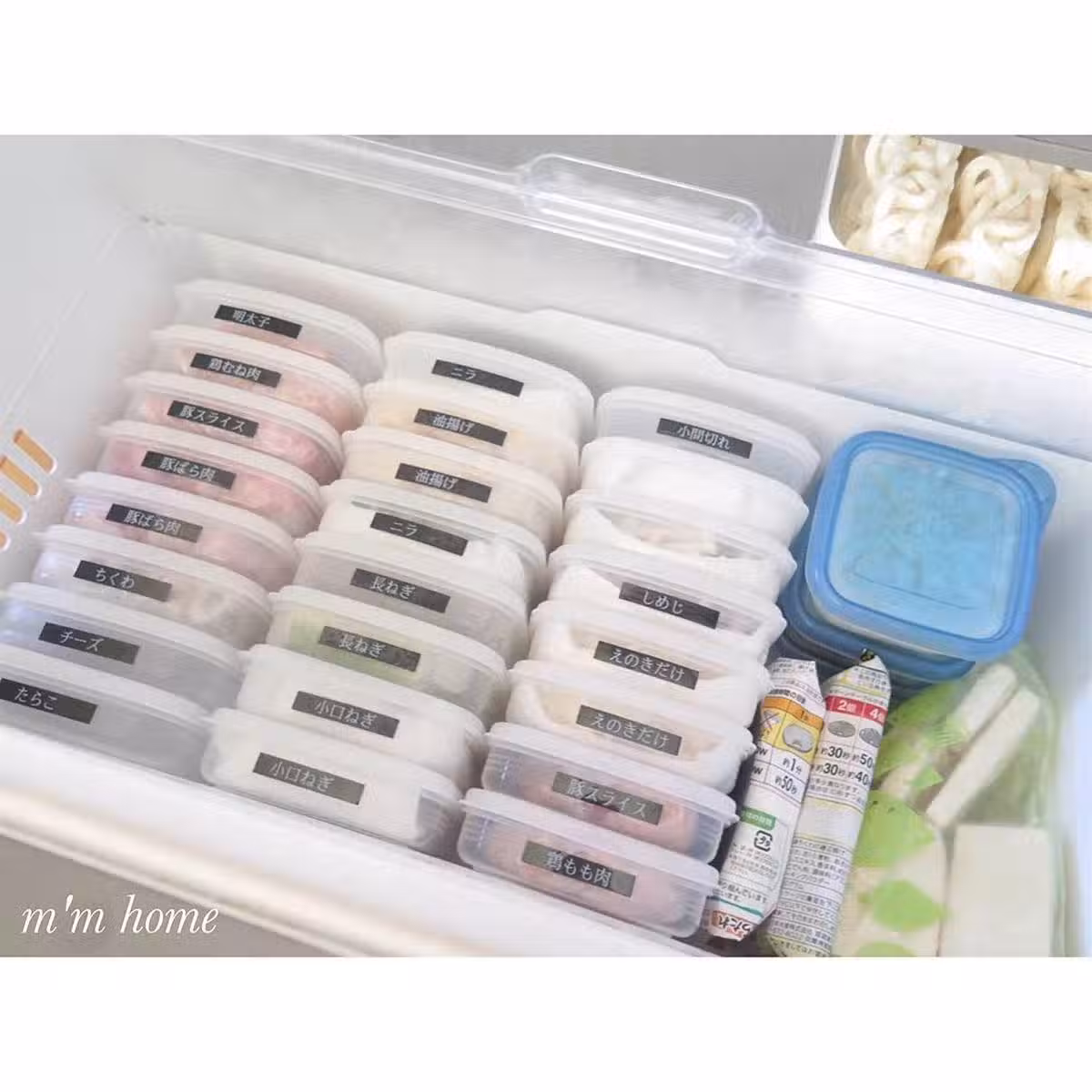 各種不同的肉和食材貼上標簽後,太干凈整潔了。