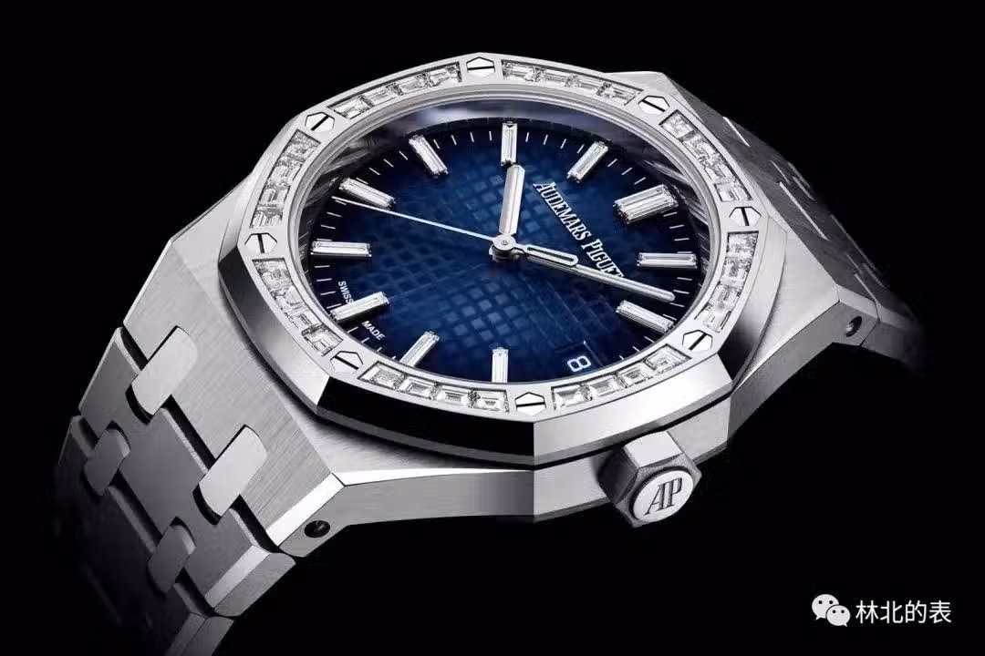 34與37的皇家橡樹都是採用實18K白金製作,搭配四個長鑽為一組的,總共32枚鑽石鑲嵌的外圈。34表徑型號:7451BC.ZZ.1261BC.01。37表徑型號:15551BC.ZZ.1356BC.01。
