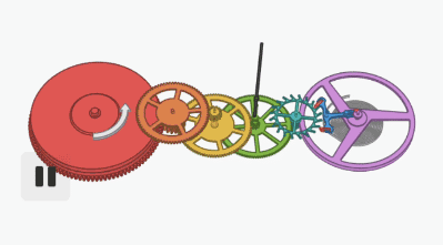 它可能看起來不多,但這些部件有很多有趣的細節,以幫助秒針以正確的速度旋轉。我們將從整個裝置的動力來源開始梳理探索這些細節。