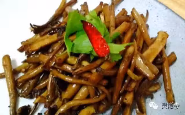 重新把茶樹菇放入炒鍋,倒入廚邦醬油,熱炒,煸干,直至金黃色 ,起鍋。