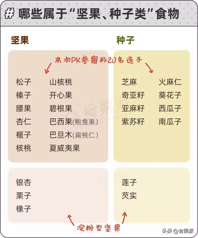 不過跟其他20種堅果不同,這5種堅果,脂肪較少(<3%),主要成分是澱粉和蛋白質,是可以當主食吃的。這裡就不放在一起比較了