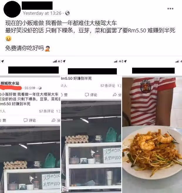 大馬男子抱怨沒有蝦的炒粿條要價RM5.50,卻被網友反嗆:不如免費請你吃?