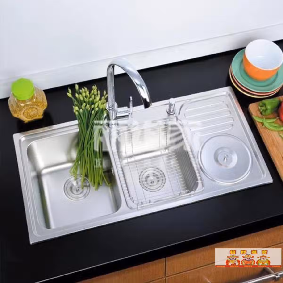 像圖上這種單盆型的,單槽的往往都是小戶型家居裝修安裝的比較多,使用的時候有一些局限性,不過如果有條件的話就最好是安裝成大單盆型的,因為用過的朋友都知道這種是最順手的,我們家也是這樣的。