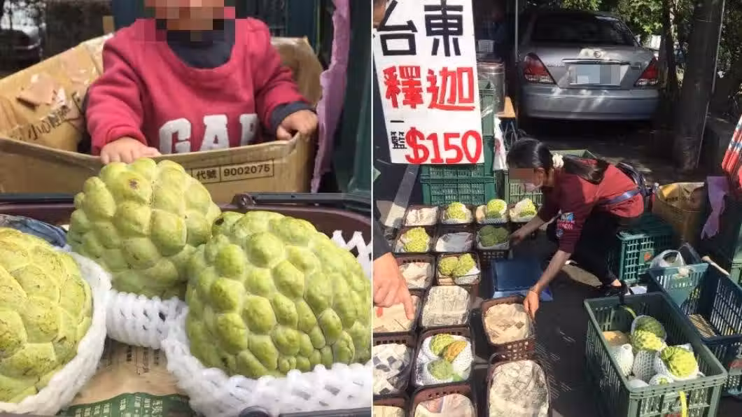 桃園市一名母親冒著毛毛細雨在路邊賣釋迦,同時還得看顧一旁紙箱裡的幼兒,身影令人心疼。曾經參選桃園市議員的李柏瑟把這樣的畫面發布上網,引發關注。目前已有部分網友前去支持,讓母子倆能早點收工回家。