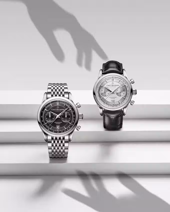 戀人如鏡,在彼此中看到靈魂深處的相似點,構成完美的結合。如這兩枚寶齊萊馬利龍飛返計時碼錶 (Manero Flyback),澄明透亮的銀色與黑色錶盤,配以皮革與精鋼鏈帶,成雙成對,詮釋愛情中的清澈與堅毅。寶齊萊 (Carl F.Bucherer) 把愛送進心坎,獻上情人節祝福。