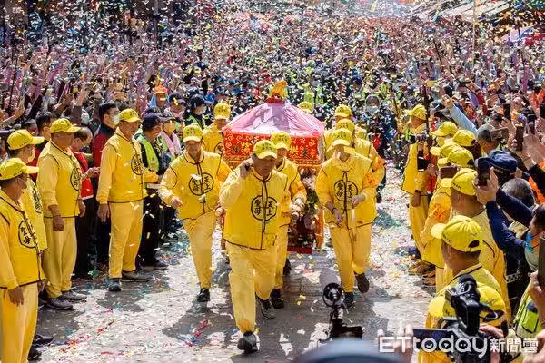 廟方人員雙手高捧,請出轎內的「白沙屯媽」金身,入朝天宮正殿神龕內安座,北港地區許多民眾也紛紛前來朝天宮參拜回娘家的「白沙屯媽」。