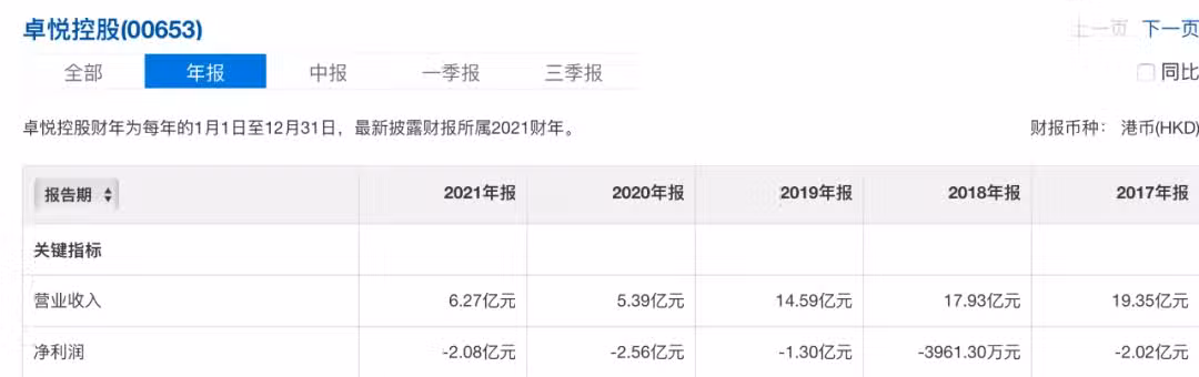 但各種手段的嘗試,並沒使卓悅走出「泥淖」。多次延緩公布財報的卓悅於2022年6月,正式在港交所停牌,股價停留在0.119元/股。2022年4月,卓悅控股發布了至今為止的最後一份財報,財報顯示,2021年,集團營收5.13億港元——僅有2014年的不到四分之一,那時是卓悅十年里的最高營收點。