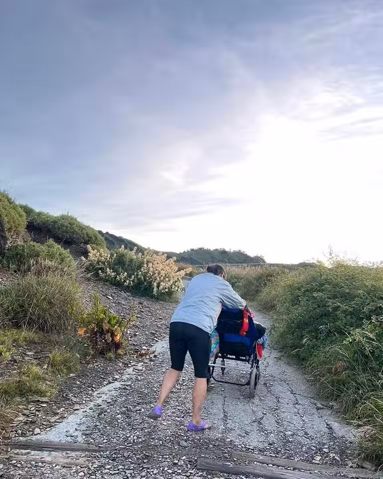 不知能推多久!單親媽帶腦麻兒「攻頂合歡山」留下最美燦笑 母子「合力完成162場路跑」母愛好偉大