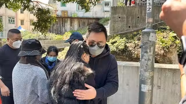 蔡天鳳家人到碎屍現場祭拜,丈夫雙眼紅腫,母親靠女婿懷中痛哭