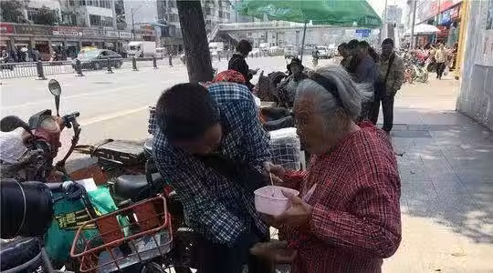 為了時刻照顧好母親,蔡玉俊決定帶著母親送貨,他改良了送貨的電瓶車,特意將后座用木板加寬,兩根木條做腳踏板,騎行的時候,再用兩根麻繩做「安全帶」,將母親與自己緊緊系在一起。