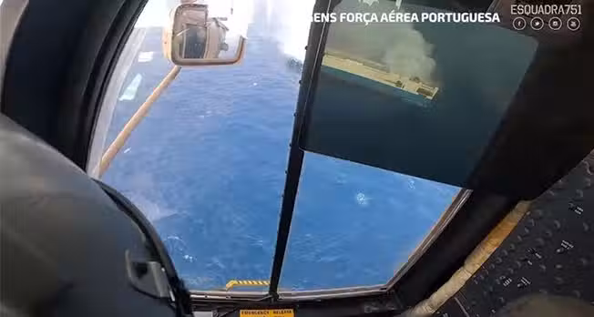 葡萄牙海軍近日公布救援畫面,上方可見起火的貨船」Felicity Ace」。