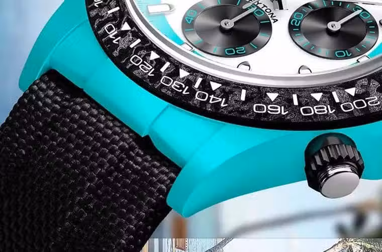 ▲表殼啟用石英纖維製成,不過這次沒有留下分層水平線,使得蔚藍色呈現更為一體化的飽和度。Source:Designa Individual Watches
