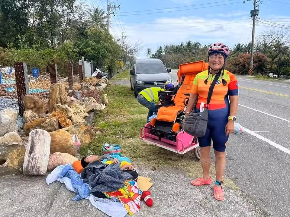 對她而言,行動不便的小比本來只能待在病房,望著天花板度過餘生。但路跑運動讓她燃起希望,許下心願要讓兒子看到更多風景,因此開始了路跑生涯。這5年來,她充當小比的「腳」,完成了將近170場馬拉松賽事。雖然每次出門都必須帶上藥品、尿布、水、針筒、營養劑、毛巾等所需品,相當於一個浩大工程,但她仍甘之如飴。這段期間,母子倆陸續參與本島、離島的賽事,更於前年3月完成全長45公里的南橫超級馬拉松,母子倆一同跑過終點,令人印象深刻。