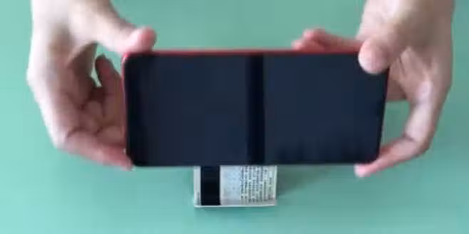 等冷卻後,廢棄的銀行卡就變成手機支架了。