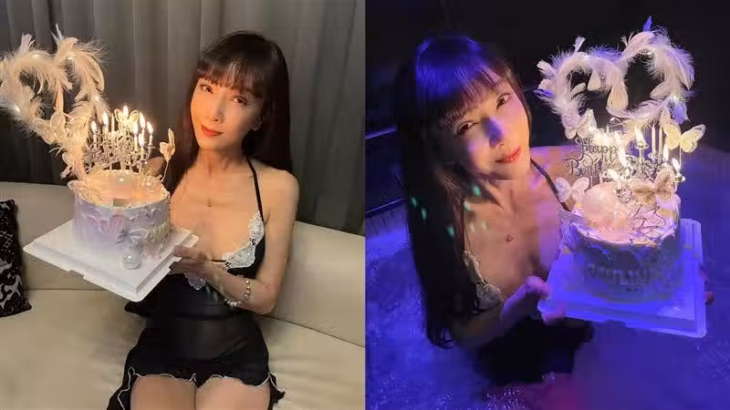 ▲胡文英去摩鐵慶生,訂製蛋糕「價格據說可以住一晚摩鐵」。(圖/翻攝自胡文英臉書)