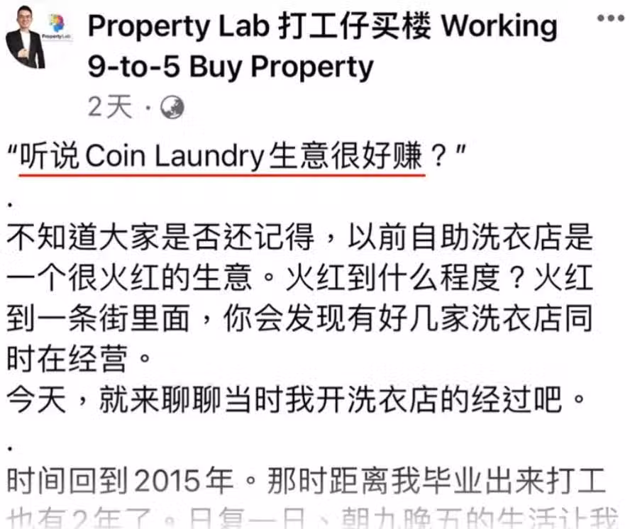 這位網友表示,在2015年時,他厭倦了打工、興起了創業的念頭,越是和朋友決定和開一間Coin Laundry。