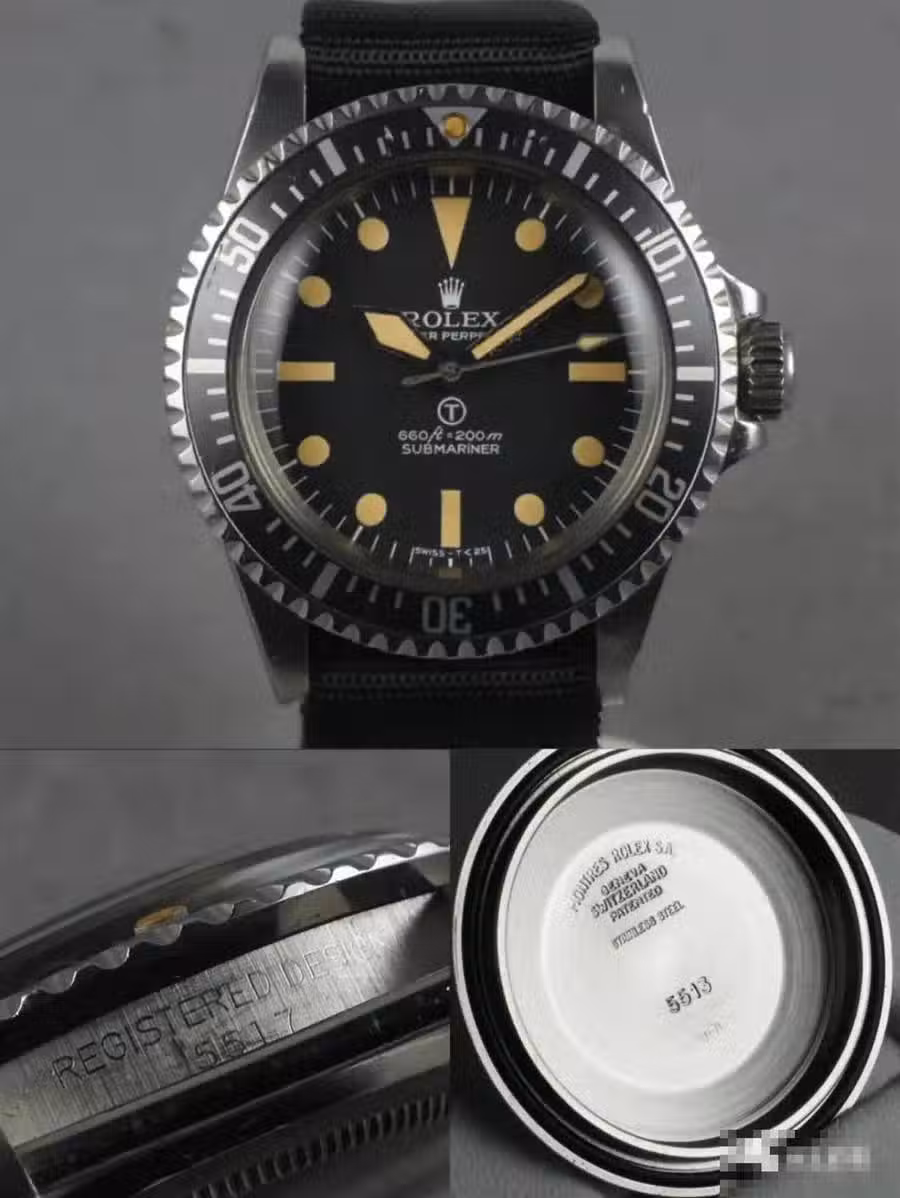 5517這是一個完全標準化英國軍事勞力士版本,是這三個型號中最晚出現的,生產周期在1977到79年。序列號在5,200,000到5,300,000之間。表耳間表身刻有5517。當年數量大概只有300枚左右,經過幾十年的風風雨雨,現存不會超過幾十個。