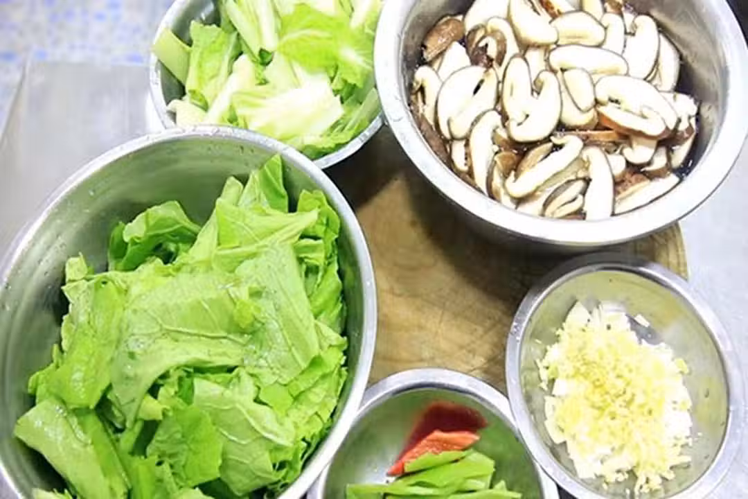 2.鍋內燒水,加入少許食鹽和植物油,增加底味、鎖住營養,水燒開以後倒入香菇片快速汆煮30秒鐘,撈來沖洗乾淨。