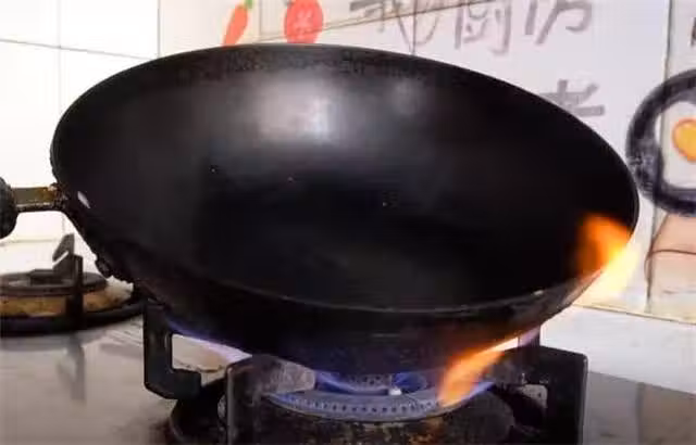 1.咱們這個鍋裡面,什麼都不要放,直接把它放在燃氣灶上,然後大火直接燒開,你像我這一面的油垢比較多,所以說就著重的燒這裡。