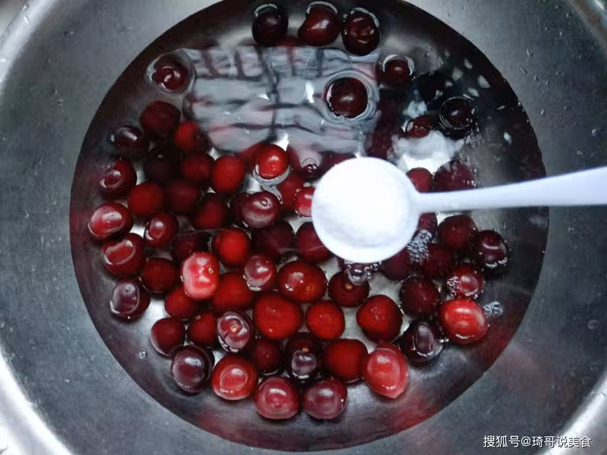 櫻桃經雨則易長果蠅的幼蟲,但大家也不要過於擔心,我們只要將買回來的櫻桃,用淡鹽水泡上10分鐘,小蟲子就自己爬出來了,然後再多衝洗幾遍就可以吃了。需要大家注意的是,清洗櫻桃之前,盡量不要先去掉櫻桃的果柄,否則洗時果肉會被污染,最好將櫻桃徹底洗凈後再摘掉果蒂。