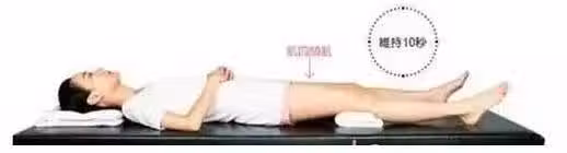 平躺於床上,在右腿膝下放一個卷緊的毛巾。