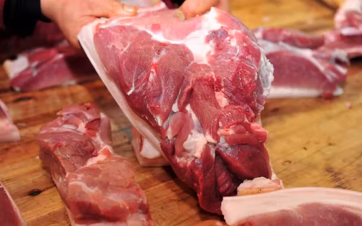 1.首先準備一塊新鮮的豬肉,我們將要保存的豬肉一定不要放在清水裡清洗哦。如果把豬肉放在清水裡清洗的話,很容易就會破壞豬肉表面上的這層油脂。這樣就會減短豬肉的保存時間啦。