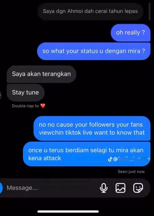 當網民問「你和米拉(女員工小名)是什麼關係時」,華裔網紅回覆說:「我會說明,等著吧。」