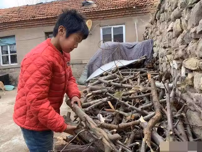 圖片中的女孩名叫芳芳,今年9歲,家在山東煙臺的一個小村莊。對於很多鄉村家庭來說,冬天是最難熬的季節。為了不讓阿嬤凍著,只要放假在家,芳芳便會去坡上拾柴火,平時也會在上學之前把家裡的土炕燒得熱熱的。