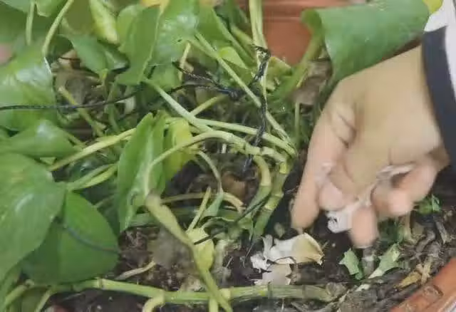 第二,可以充當化肥。當花草出現黃葉的現象,可以在上面撒一些大蒜皮,大概五六個小時的時間,它們就發酵完成了。發酵完之後,可以讓花草更好的吸收,還可以預防害蟲,省下一大筆錢。
