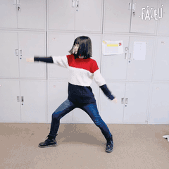 雙手臂前伸上抬,甩至頭頂上方,同時配合挺胸仰頭。
