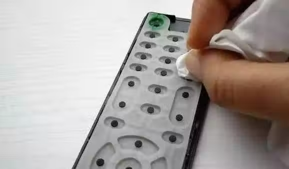 如果把灰塵都擦乾淨後,按鍵還是沒反應,說明按鍵的導電橡膠已經老化了,這時可以用2B鉛筆在失靈按鍵的觸點上塗一塗。鉛筆的主要成分是石墨,石墨有很好的導電性,可以代替老化的橡膠。