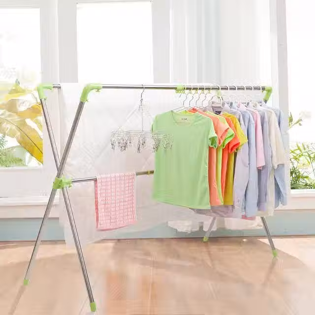 陽台空間太小,沒有足夠的地方晾衣服怎麼辦?完全不用擔心,新型多功能晾衣架可以給你解決這個問題,讓你在狹小的空間也能曬很多的衣服,這款X型的晾衣架,具有很好的穩固性能。優質不銹鋼鋼管,加粗的設計可曬床單和被褥等,折疊收納更加的便捷。