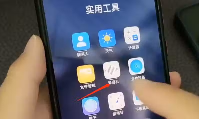 第三種,如果我們的身邊有另外一台手機的話,我們也可以找到手機上面的錄音機,當我們通話的時候,點擊下方的紅色按鈕,它就開始自動錄音了。