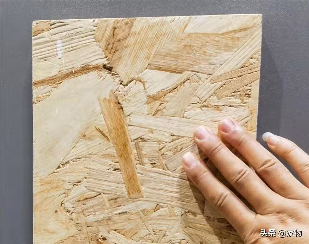 再來說說歐松板,我們常說的OSB板其實就是歐松板,我個人覺得算是一種高配的顆粒板,它主要是用刨片的木頭壓制而成,硬度超強的同時,還比顆粒板更不容易斷裂。