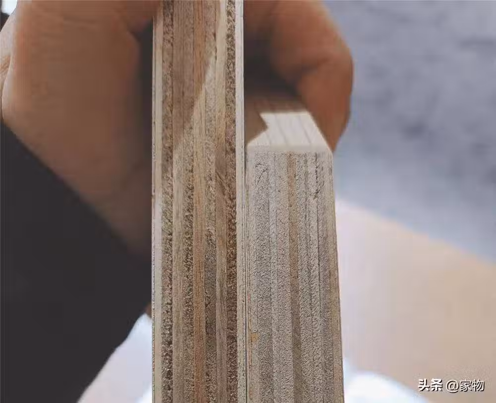 多層板從切剖面來看,就是用三層或以上的薄板加膠熱壓貼合而成,最大的優點就是防水性比較強,同時呢,因為本身多層板材疊加,堅硬程度和耐用性也要好上不少。